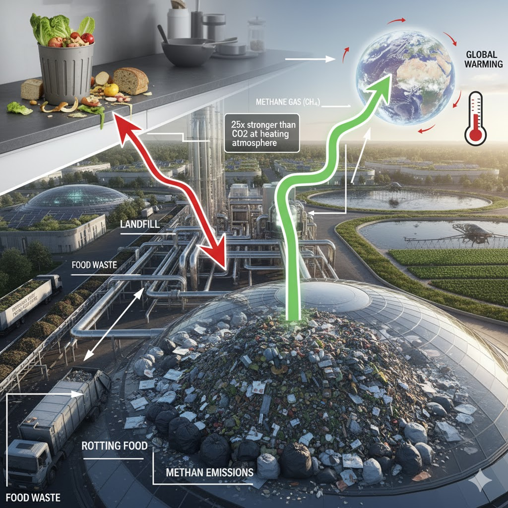 Turning food waste into energy has economic and environmental advantages. The biggest advantage is that the amount of waste entering landfills will be greatly reduced. The United Nations Environment Programme (UNEP, n.d.) estimates that food waste accounts for more than 8% of global greenhouse gas emissions. When food decomposes in landfills, it produces methane, but when that food decomposes and is handled properly with regulated systems, that same gas that can harm the environment is captured and turned into renewable energy. Not only does this reduce dangerous emissions, but it also replaces fossil fuels with a cleaner source of energy, and the CS Chemical Reviews (2022) paper, “Turning Food Protein Waste into Sustainable Technologies”, informs that food protein waste may be used to produce value-added compounds and bioenergy, thereby creating economic and environmental value. In doing this, the people can now create renewable natural gas, electricity, and even fertiliser for the soil. The United Nations reinforces that countries utilising food waste in fertiliser and biogas are exceeding climate goals as well as energy goals. The combination of these systems shows an increase in a strong economy, where waste is not just thrown away but is being recycled into something useful. The circle of waste suggests sustainability since it prevents the cycle of waste, where that waste becomes a resource and not a problem for the environment. In addition to preventing climate change and reducing global warming, it also saves money by reducing landfill space and producing cheaper energy.